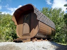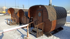 Баня-бочка зготавливается в цеху и привозится в готовом виде. Сборка на месте также возможна (оплачивается дополнительно).